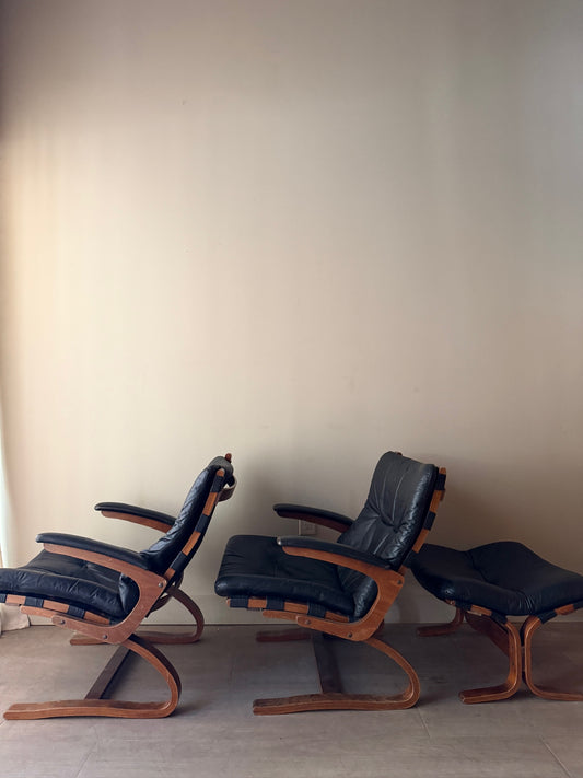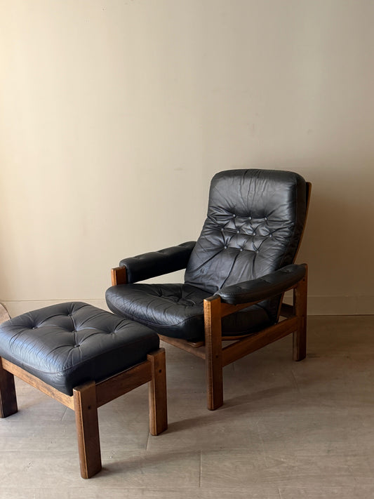 Elsa and Nordahl Solheim Kengu leather armchair with ottoman (right)
