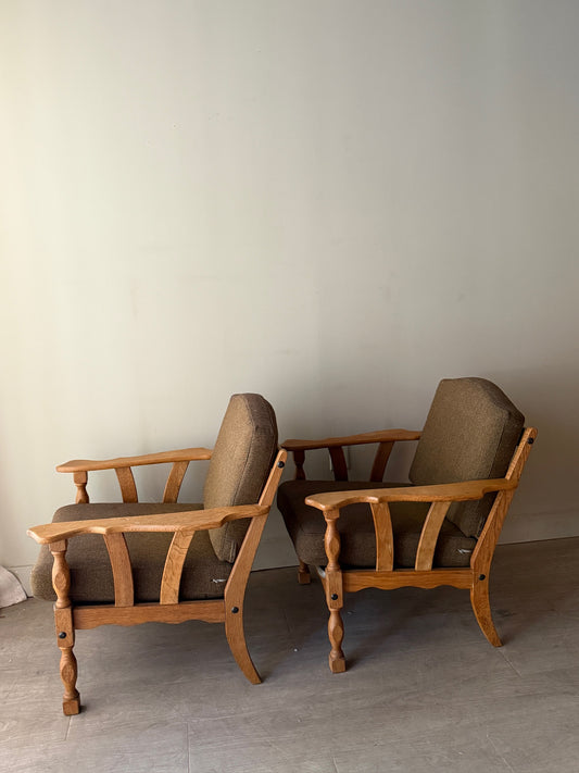 Danish oak lounge chairs. Sold individually.