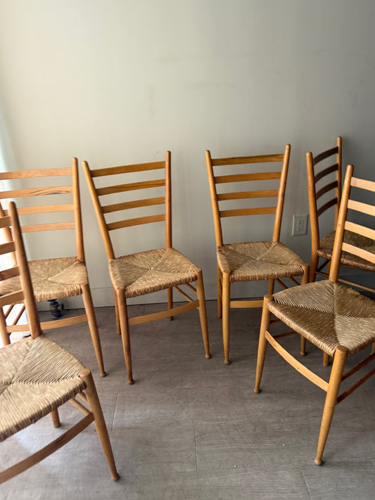 Maple rush seat dining chairs. Sold in pairs.