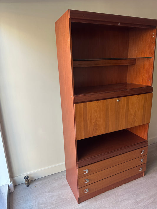 Walnut bookcase with drop down bar