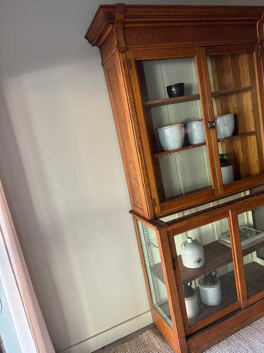 Sold outTwo piece oak display case