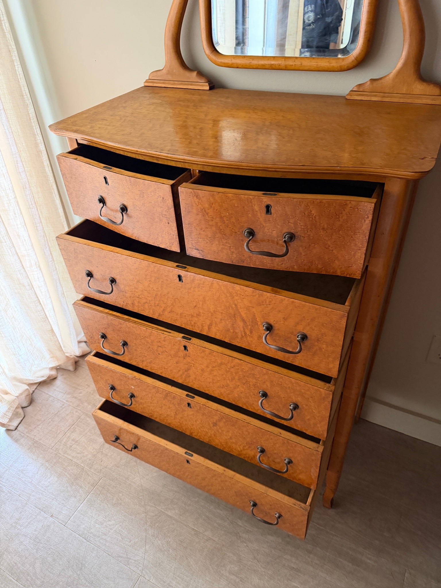 Bird’s eye maple dresser with mirror