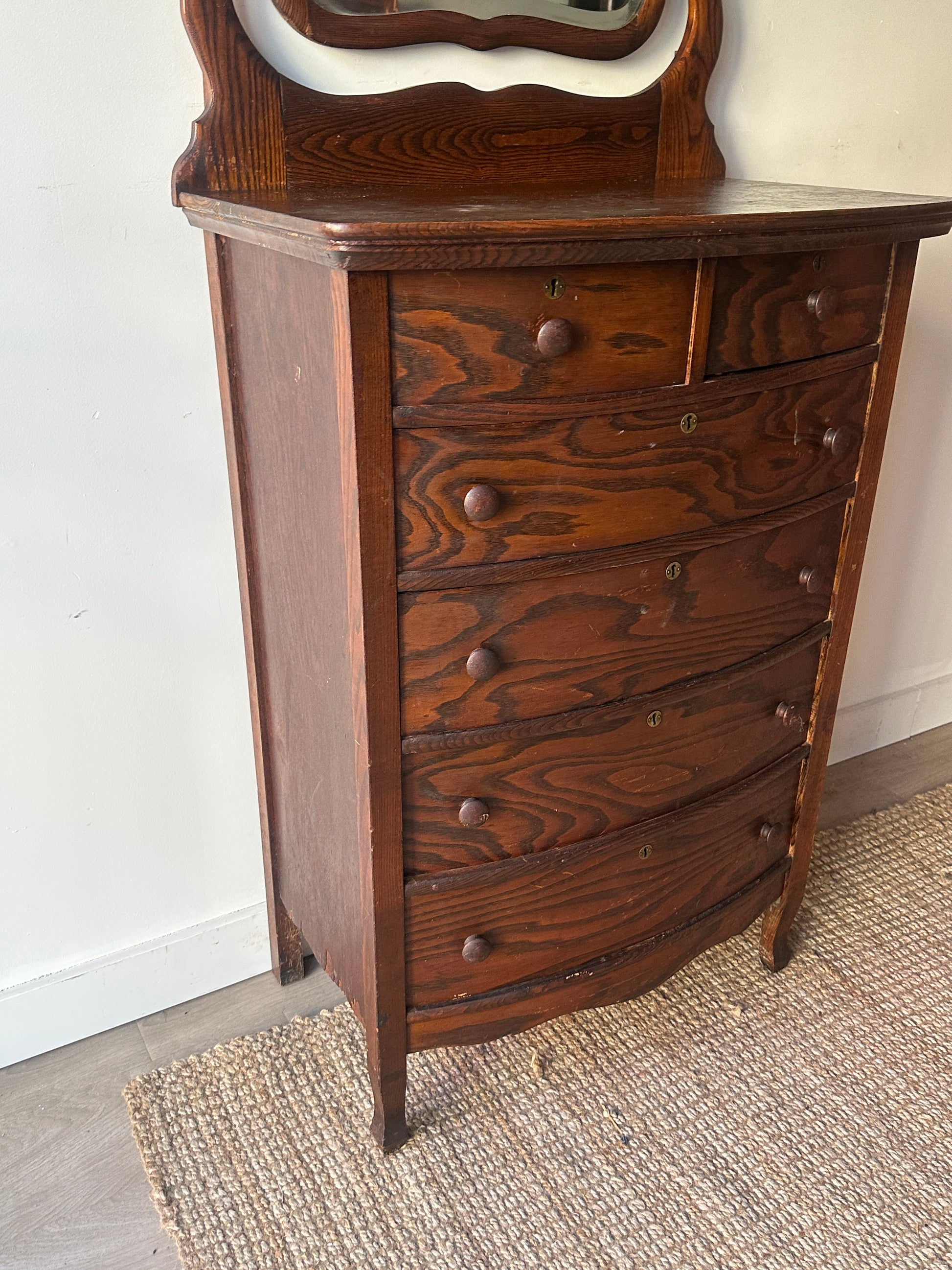 Oak tallboy with mirror