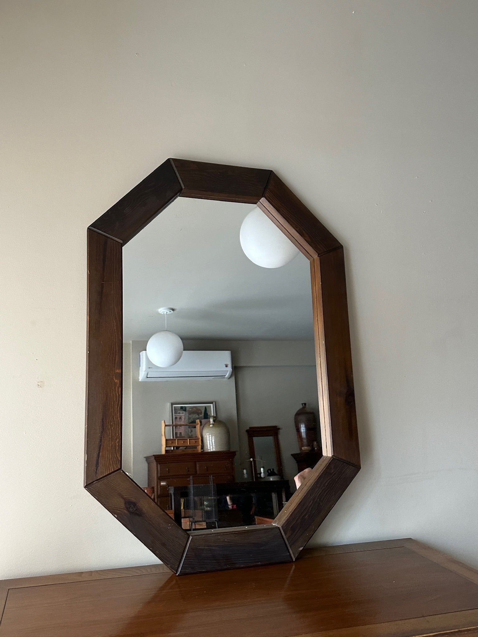 Swedish pine octagonal mirror