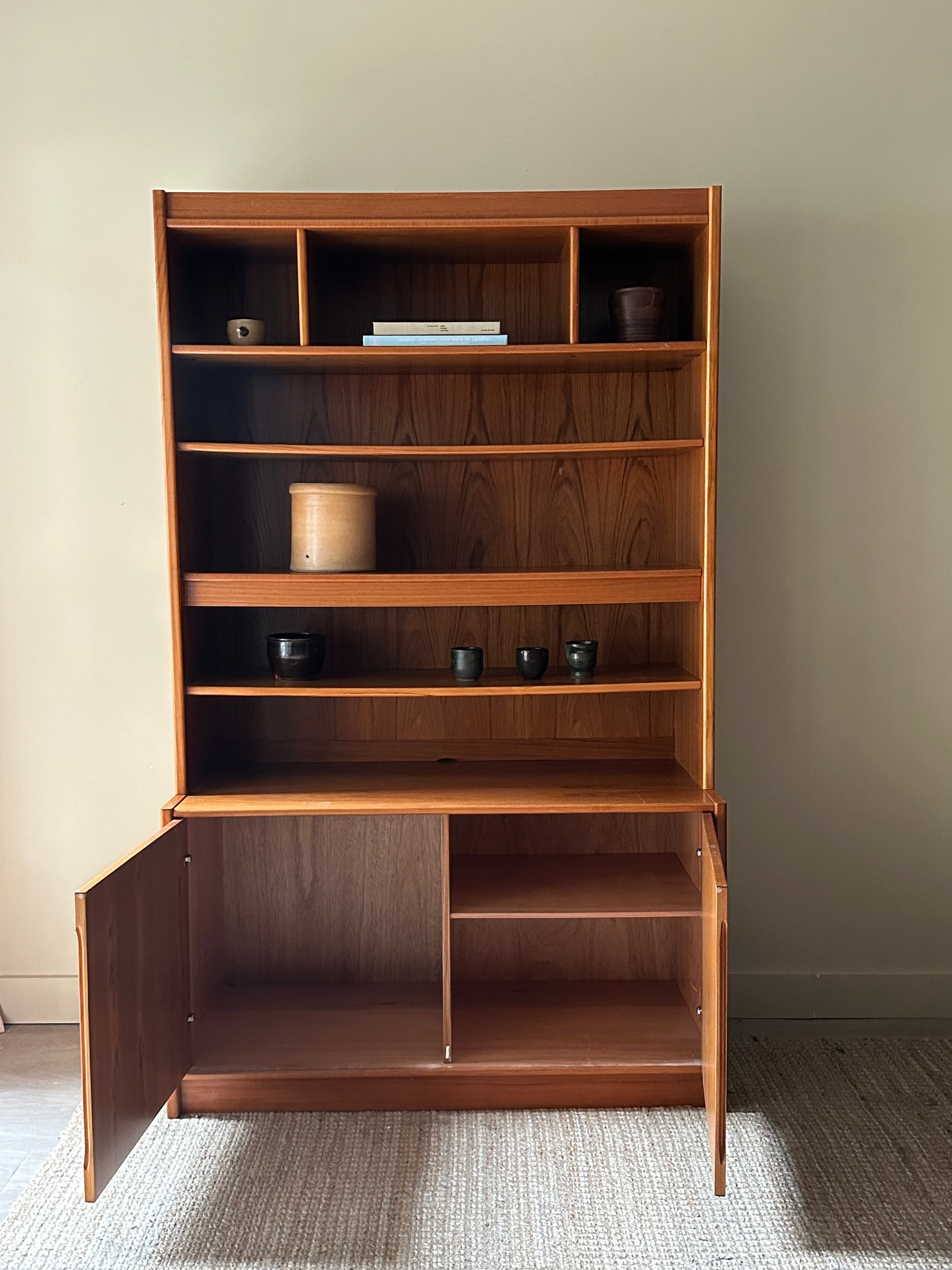 Teak two piece hutch