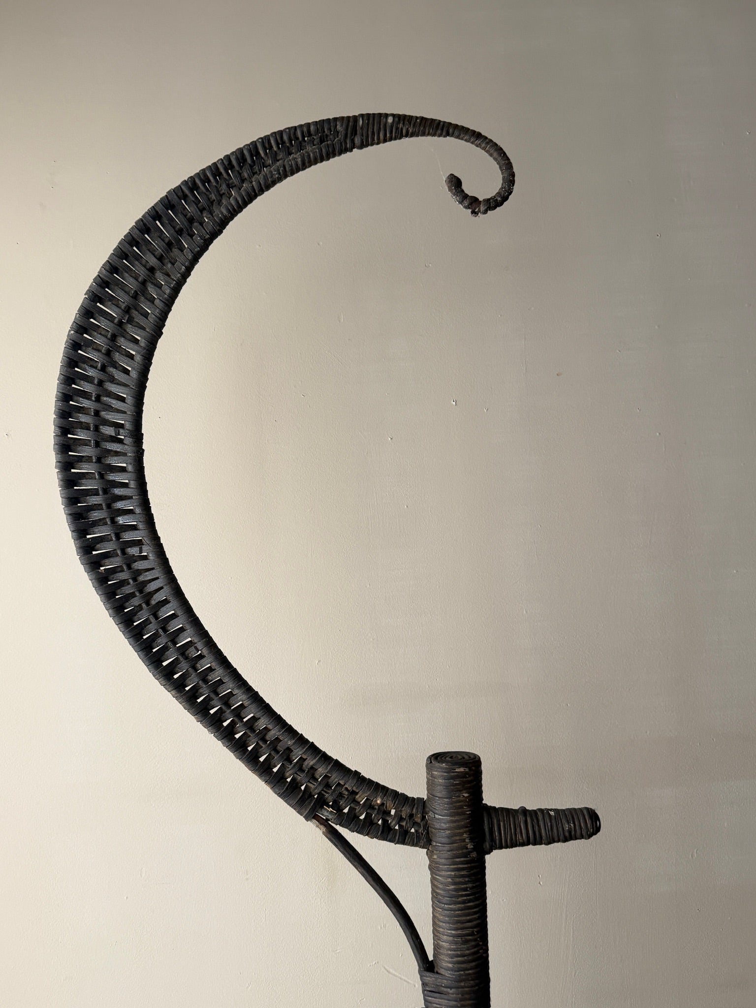 Victorian wicker crescent moon bird cage stand