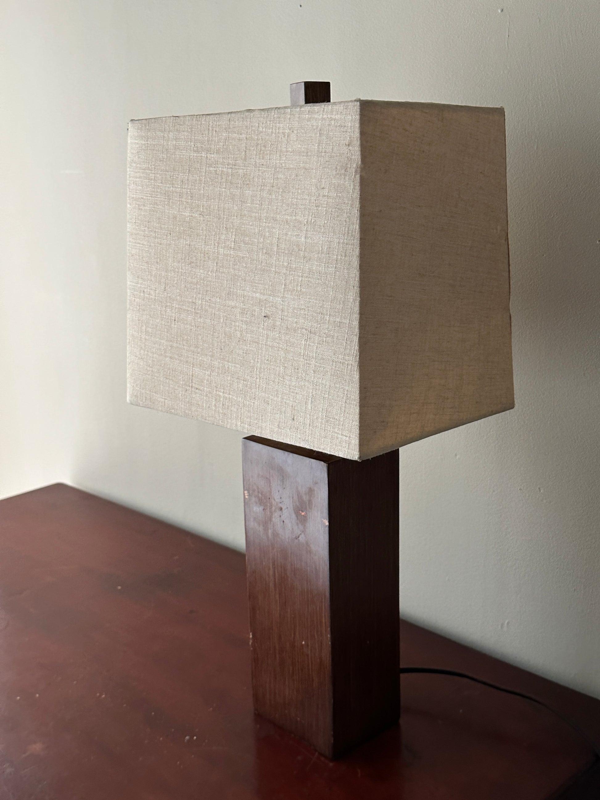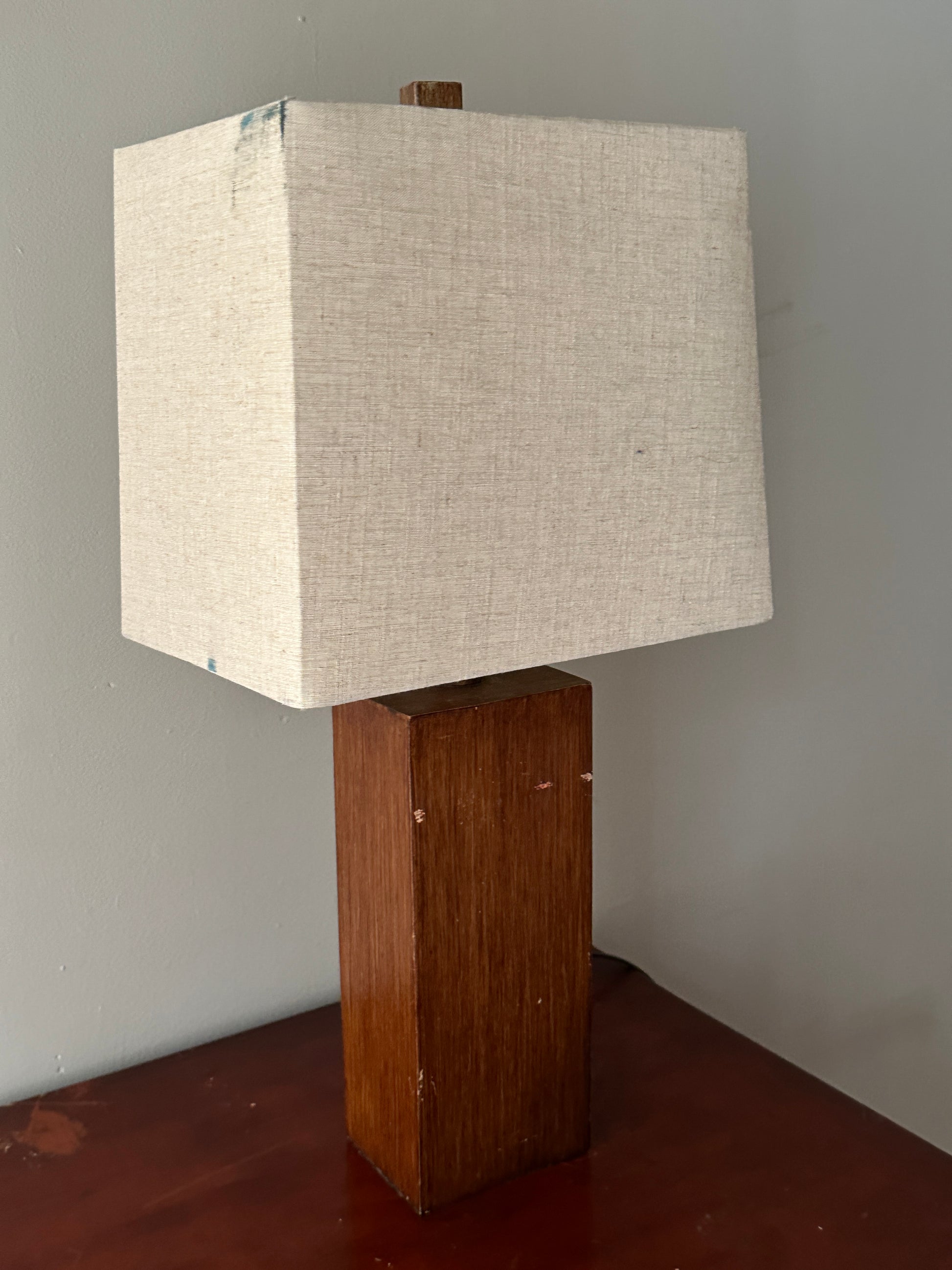 Walnut table lamp with scuffs
